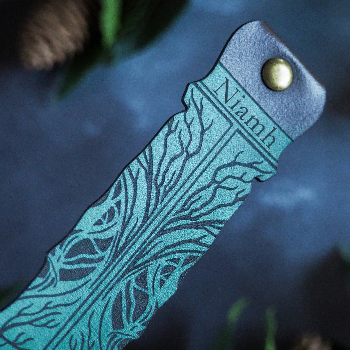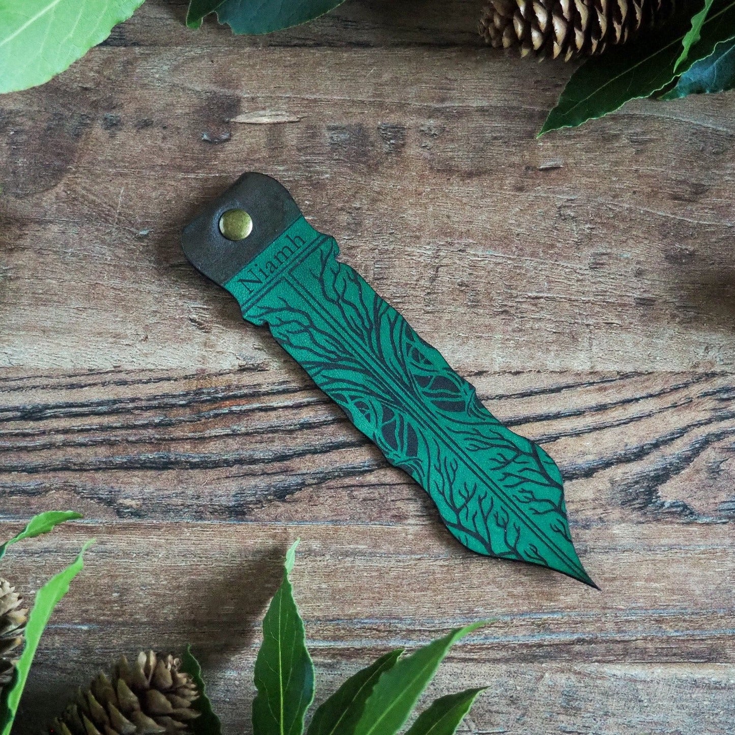 This beautiful art nouveau style leather bookmark is engraved with our mystical forest design and available in your choice of leather colour. It can also be personalised with a name or initials of your choice. The riveted fold sits outside the book, making it easy to delve straight back into your favourite book or journal. This custom leather bookmark is a wonderful gift for book lovers and writers with a flair for the unusual.