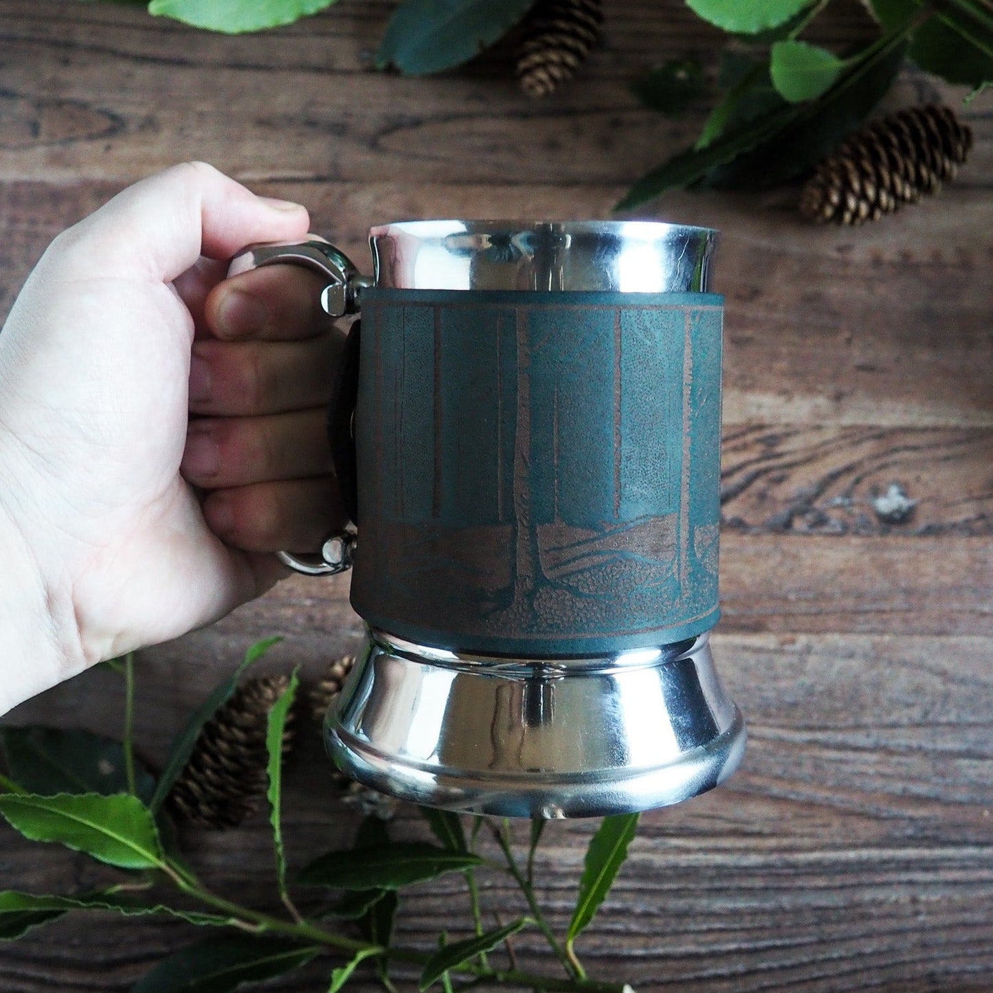 A boon for those who keep breaking glasses, our leather bound steel tankards are made with high quality full grain leather that's soft and supple and can be personalised with text, a quote, initials or a date.