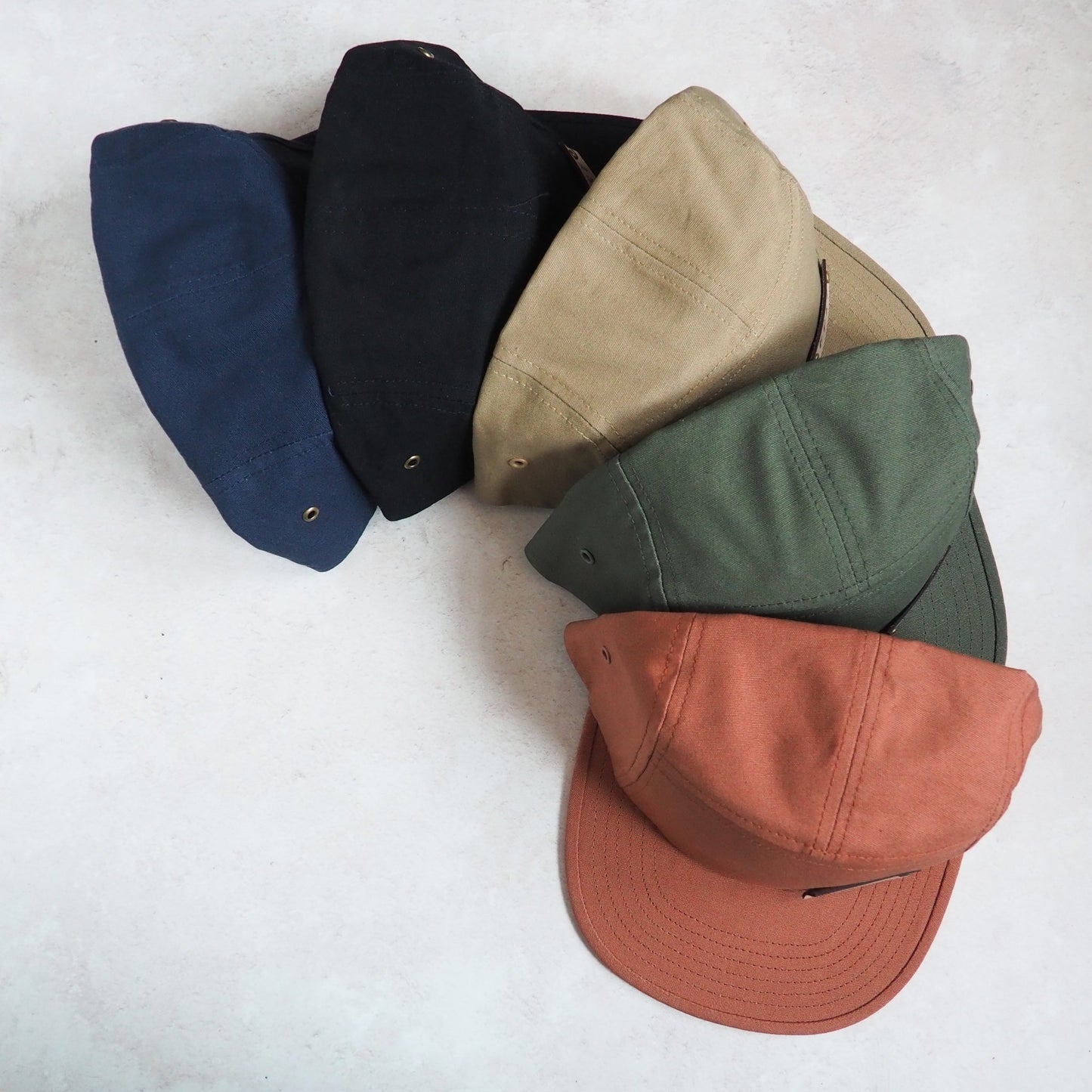 This camper cap has a low profile, flat peak and nylon strap clip closure. Comfortable and classic!