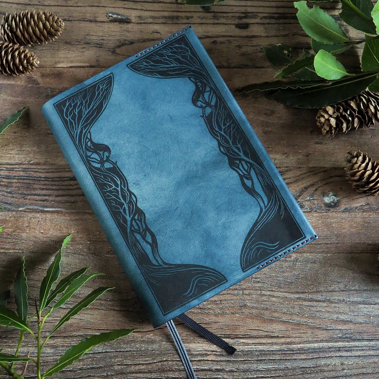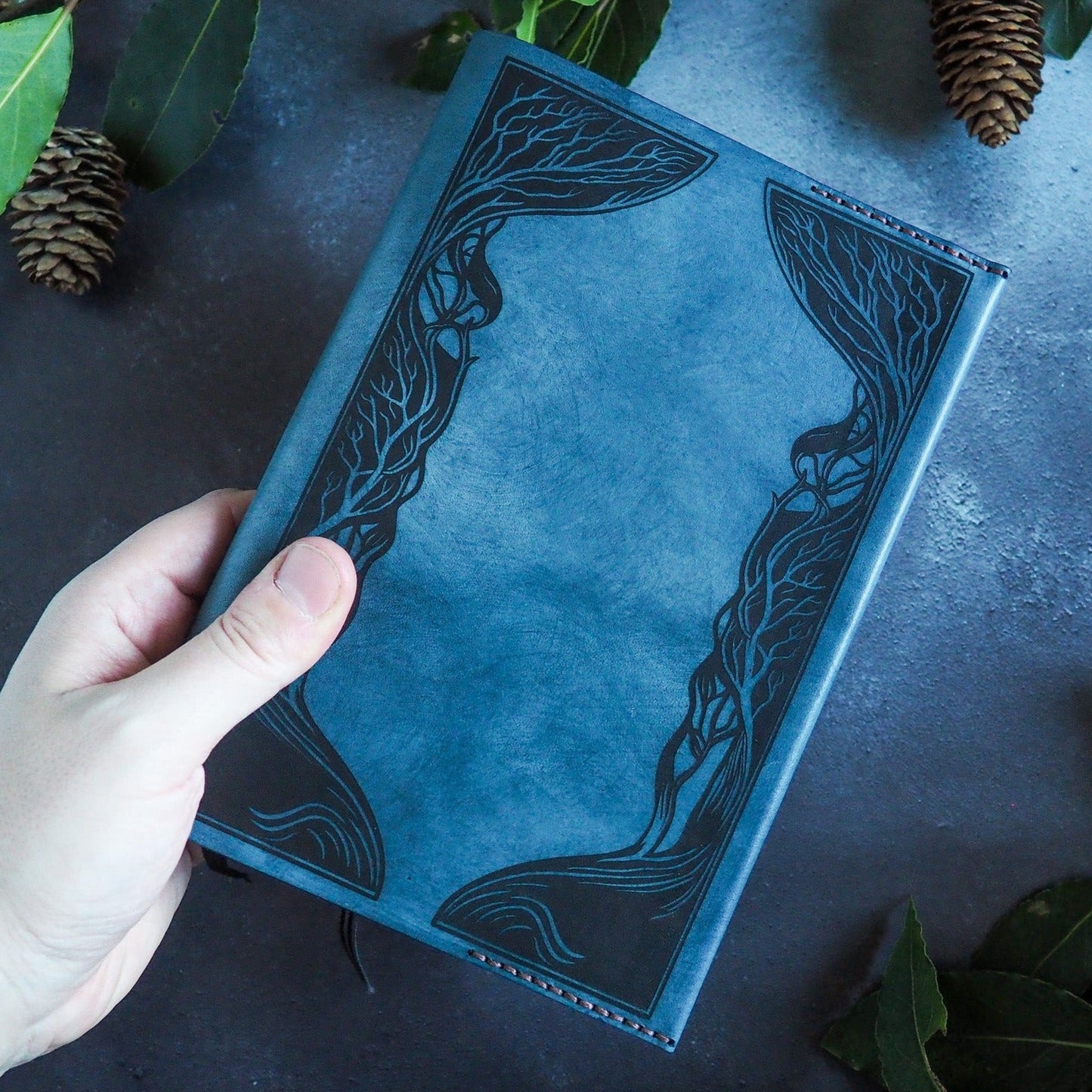 This removable genuine leather notebook sleeve is engraved with our art-nouveau-inspired mystical forest border illustration. It's the perfect gift for writers, illustrators, and lovers of fairy tales and the magical. This journal cover can be personalised with your choice of leather and stitch colours, and a custom message on the inside of the front cover in your choice of font. Crafted to last a lifetime, this refillable cover is ready for whatever creative endeavours await you.